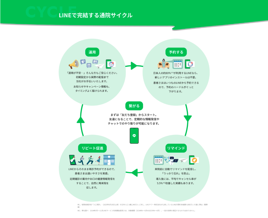 LINEを活用した予約により、患者様は日常的に使うアプリから予約や履歴確認ができるようになり、利便性が向上しました。